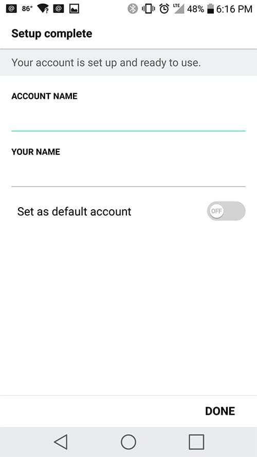 13. You are all set! Go back to the main menu, open the Email app and your messages should start syncing. Please give it a few minutes to download data before troubleshooting.