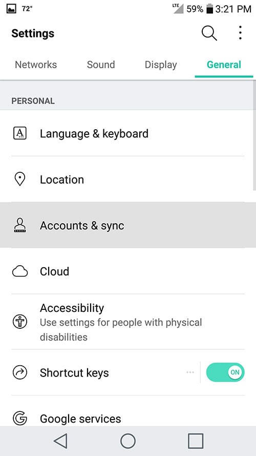 3. Tap on Accounts & Sync
