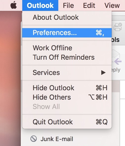 2. Select Preferences from the Outlook menu.