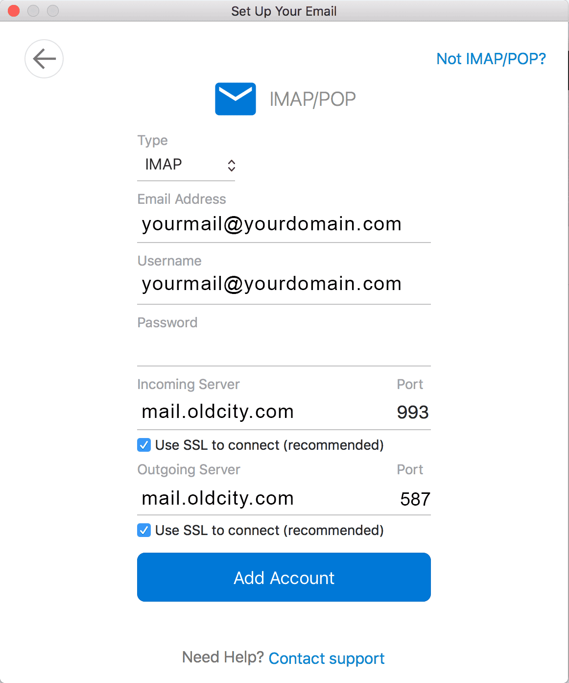 Incoming Server: mail.oldcity.com