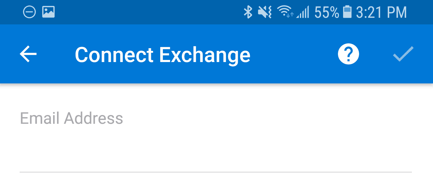 5. Now, the app by default will choose Exchange. Tap on the white Question Mark icon on the top left