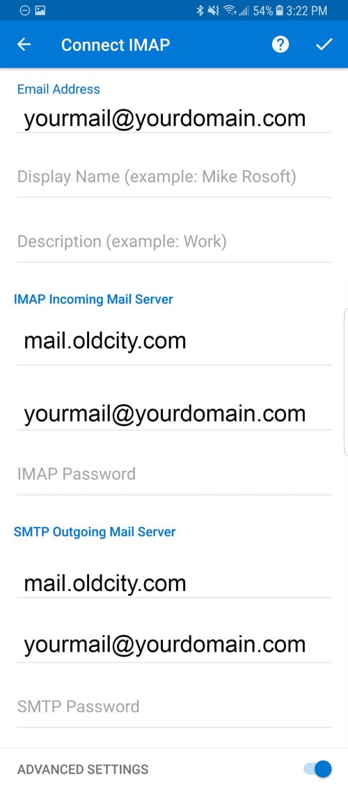 IMAP Incoming Server: mail.oldcity.com