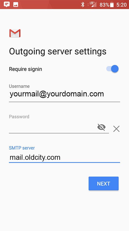 5. Enter your email address: yourmail@yourdomain.com