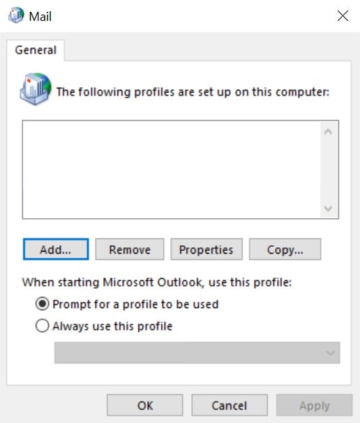 5. Select Add to add a new profile. Enter any name you wish and select OK