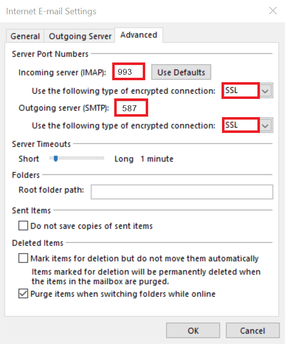11. FIRST change Use the following type of encrypted connection to SSL for both the Incoming and Outgoing servers.